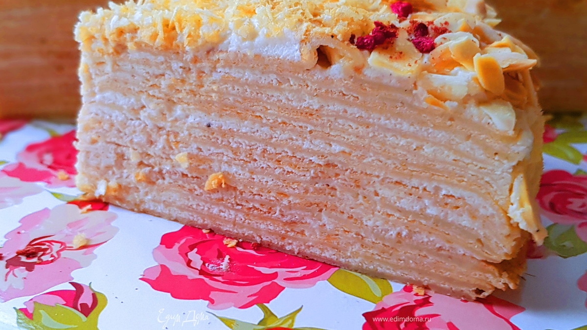 Пока остывает крем, можно напечь блинов. На приготовленное количество крема потребуется 15–16 блинов диаметром 20 см. - Шаг 11