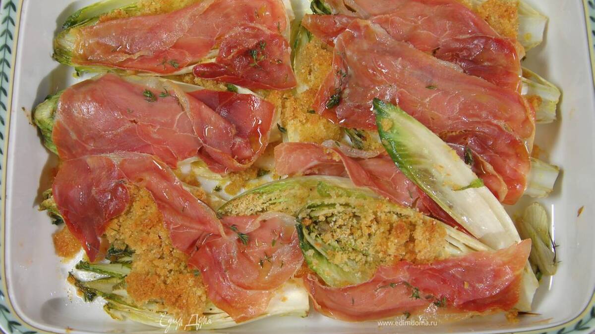 Вернуть цикорий на 5 минут в разогретую духовку, чтобы ветчина слегка поплыла.
