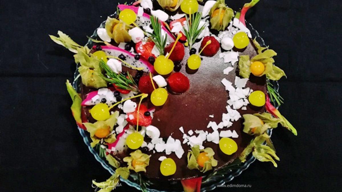Украшаем торт по желанию. У меня свежие и замороженные фрукты, коктейльная вишня, кокосовые кранчи. - Шаг 16