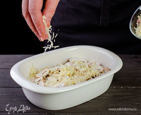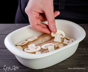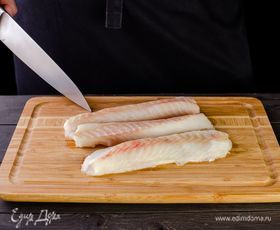 Разморозьте и промойте филе трески, разрежьте на порционные кусочки, посолите и поперчите по вкусу.