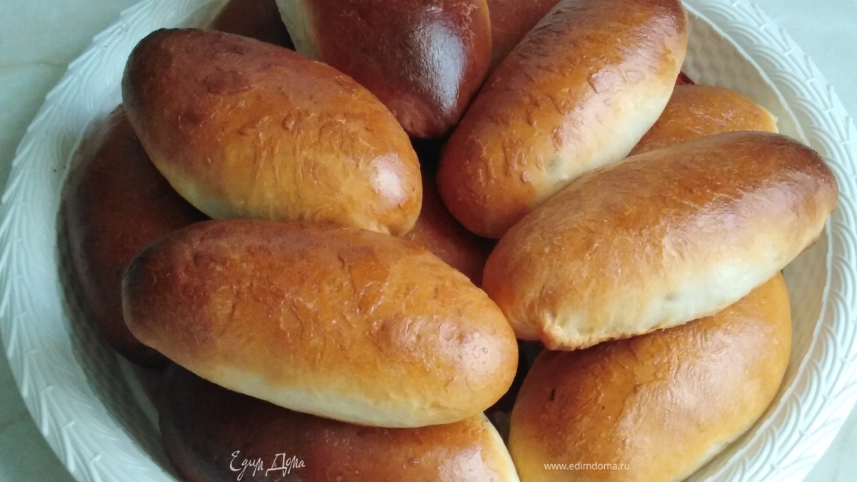 Разогреть заранее духовку. Пирожки выложить на противень, застеленный пергаментной бумагой и смазанный растительным маслом. Смазать смесью яйца с молоком или водой. - Шаг 11