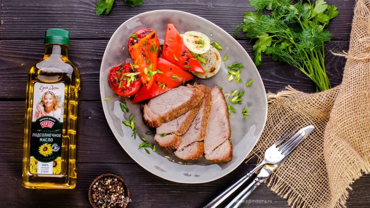 Нарежьте запеченное мясо ломтиками, выложите к нему приготовленные на гриле овощи. - Шаг 9