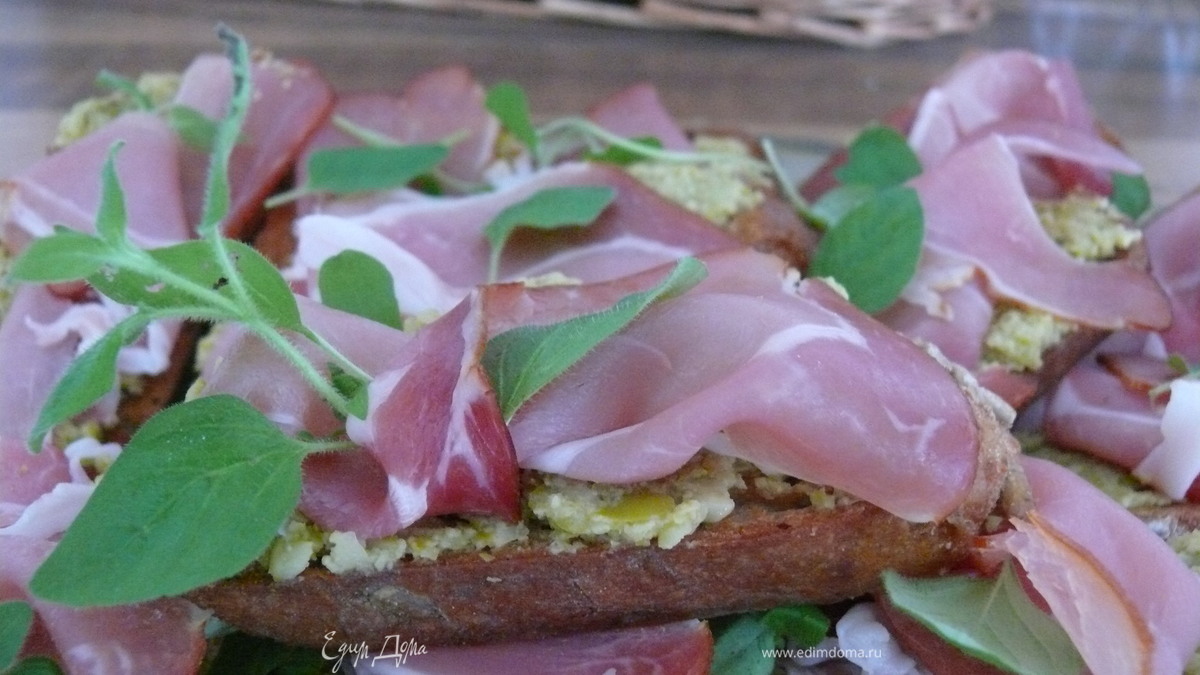 Кростини с оливками и пармской ветчиной