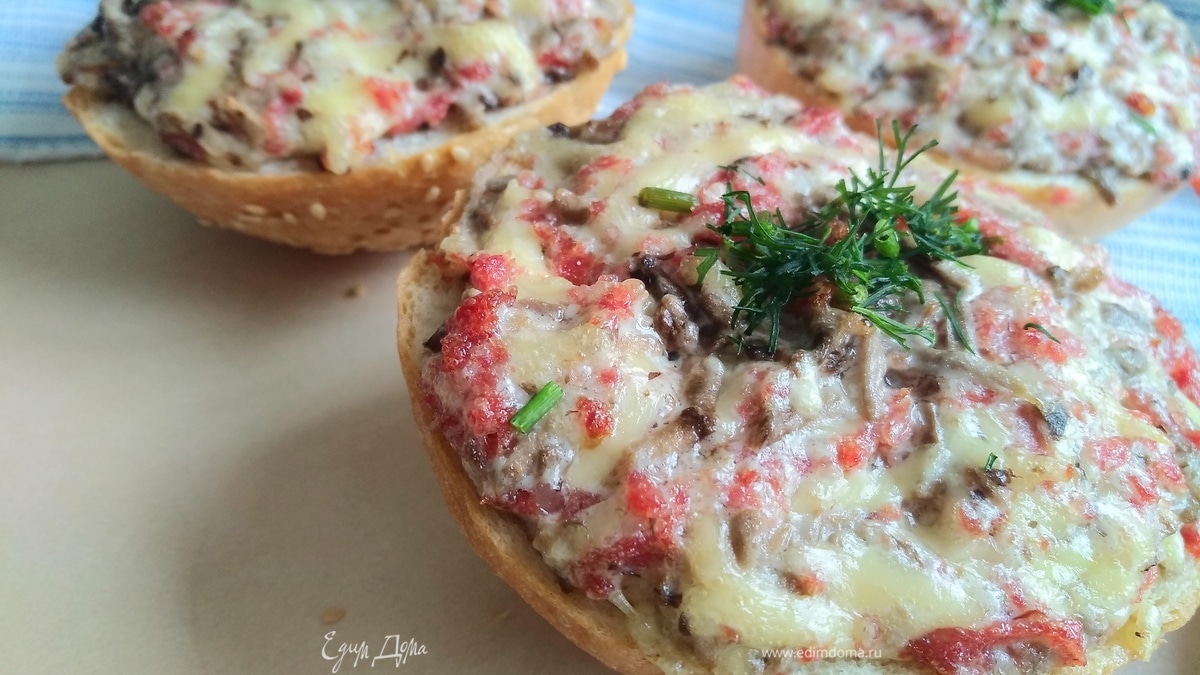 Укладываем готовую начинку на булочки. Отправляем в разогретую духовку на 10–15 минут. - Шаг 6