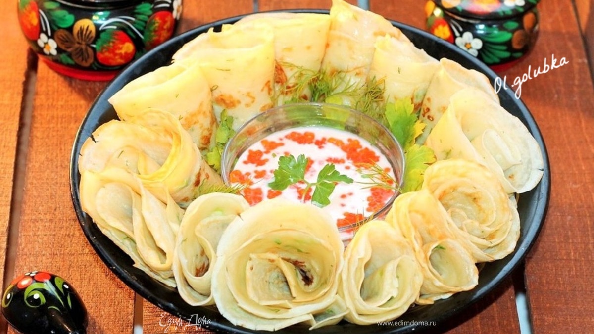 На разогретой сковороде (смазываем маслом только для первого блина) обжариваем блинчики с двух сторон. Выкладываем блины стопкой, смазываем кусочком сливочного масла. - Шаг 8