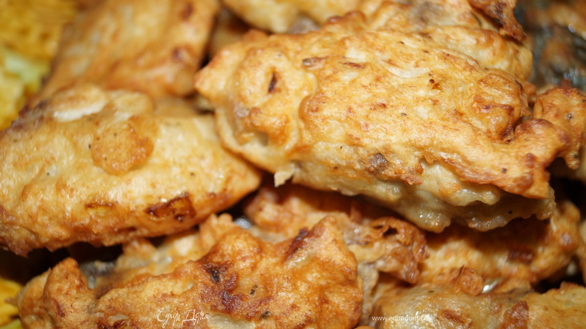 Через полчаса разбейте в рыбу яйцо и перемешайте все. После добавьте муку и аккуратно все снова размешайте. Должна получиться такая вот походная рыба в тесте. В сковороду с разогретым маслом я выкладывала рыбу двумя столовыми ложками, добавляя тесто равномерно на кусочки рыбы сверху. Используйте все тесто до последней капли, не пожалеете. - Шаг 3