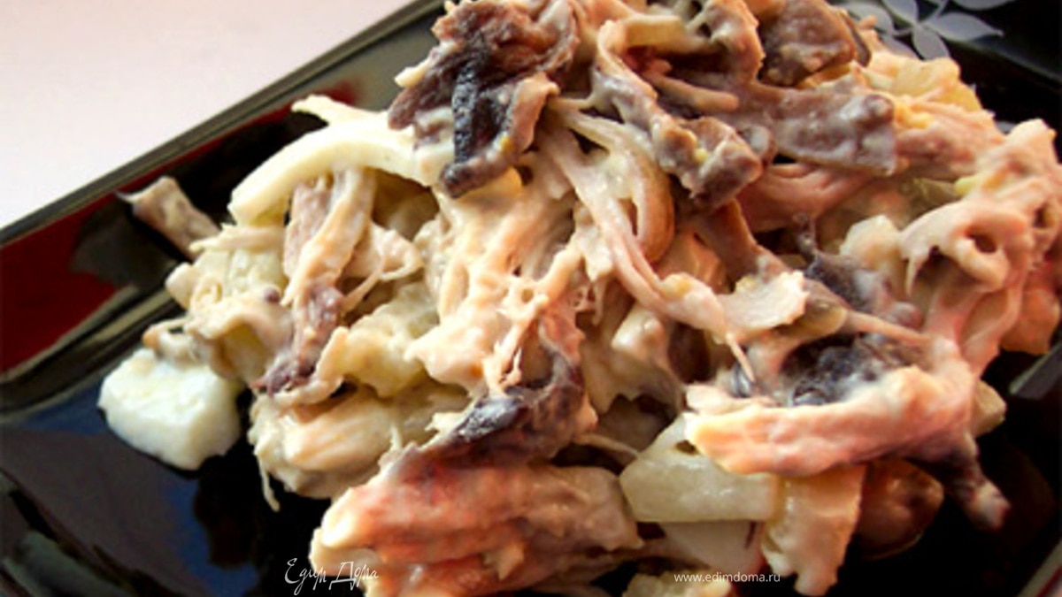 - ПодготовкаЯйца отварим и нарежем крупными кубиками. Также нарежем ветчину или отварное мясо. Суть салата дубок заключается в том, что все ингредиенты нужно резать крупно. Высыпаем грибы, посыпаем нарезанным зеленым луком и заправляем салат майонезом. Салат "Дубок" готов.