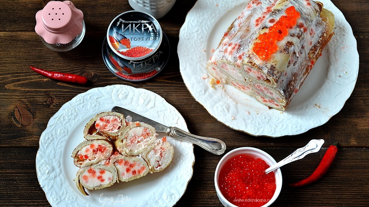 Торт-мороженое с блинами и икорным кремом