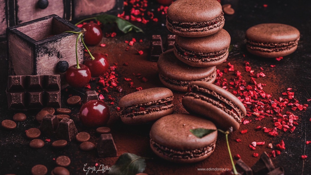 Готовые «крышечки» разделить попарно, на одну половинку нанести шоколадный ганаш, посыпать сублимированной вишней, накрыть второй половинкой, аккуратно прижать. - Шаг 19