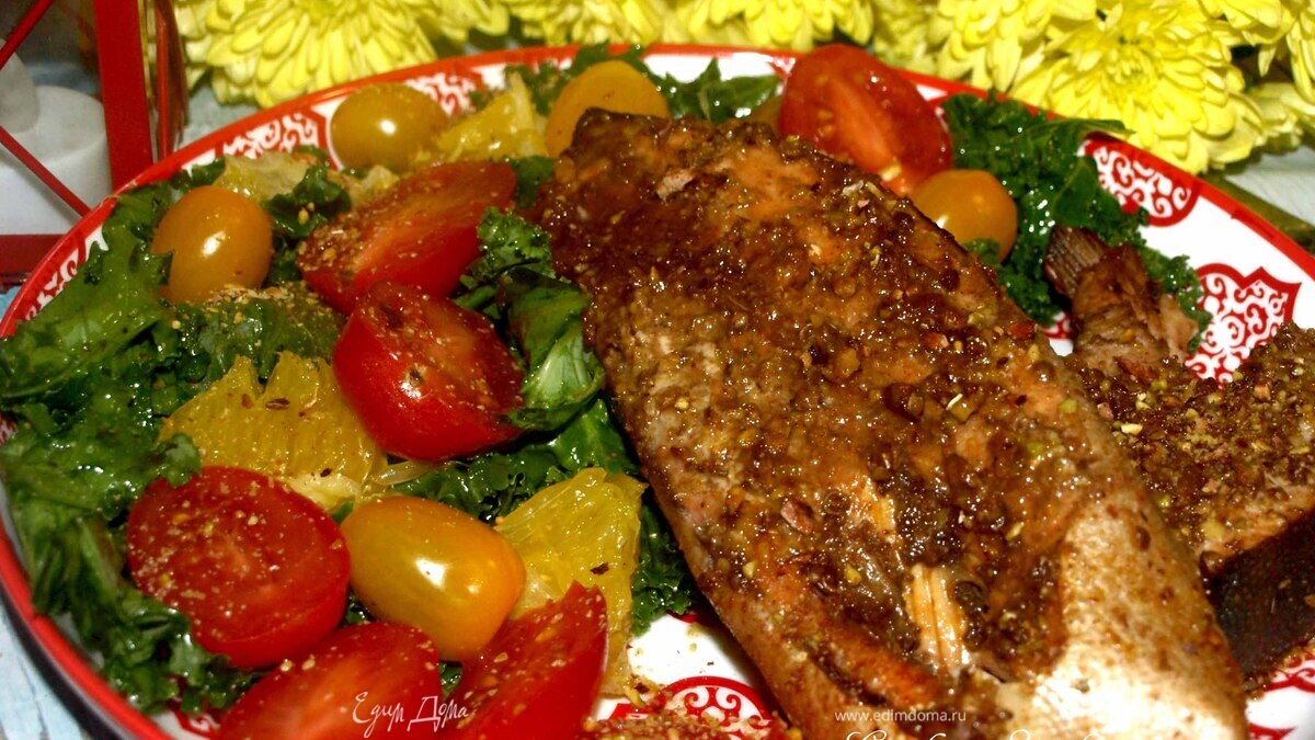 Перед подачей посыпать фисташками. Подавать с салатом и свежими овощами. К такой рыбе идеально подойдет апельсин. - Шаг 7