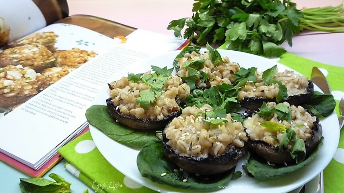 Грибы, фаршированные перловкой