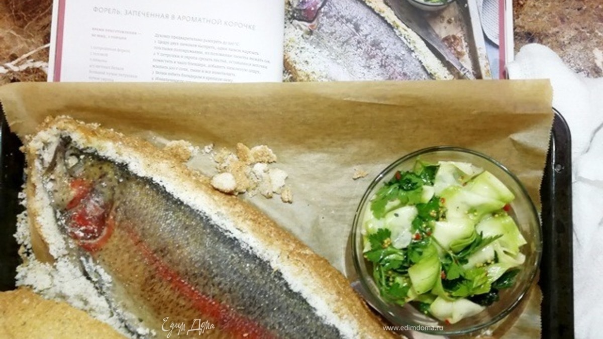 Сверяемся с рецептом и подаем форель, запеченную в ароматной корочке, с салатом. - Шаг 22