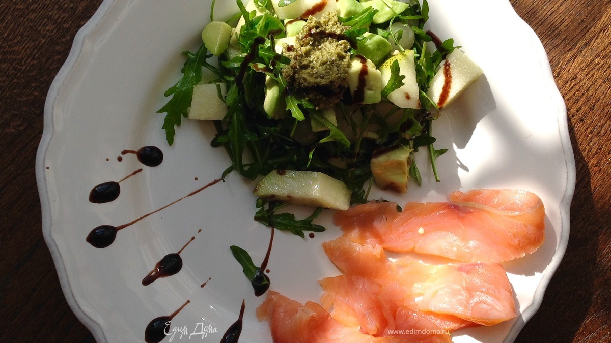 Тонко нарезаю форель. Собираю салат на тарелку. - Шаг 8