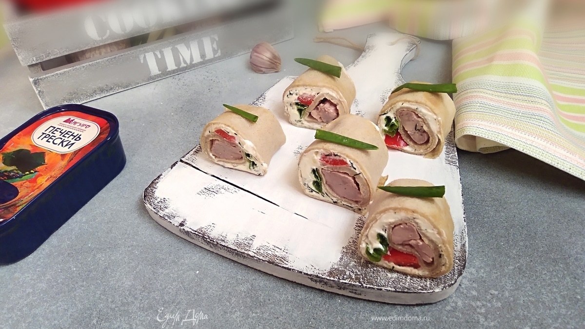 Все знают о пользе печени трески. Но кроме обыденного салата можно приготовить вот такие, как я их называю, «русские» или блинные роллы. Печень трески ТМ «Магуро» очень нежная, она хорошо подошла для этой закуски.