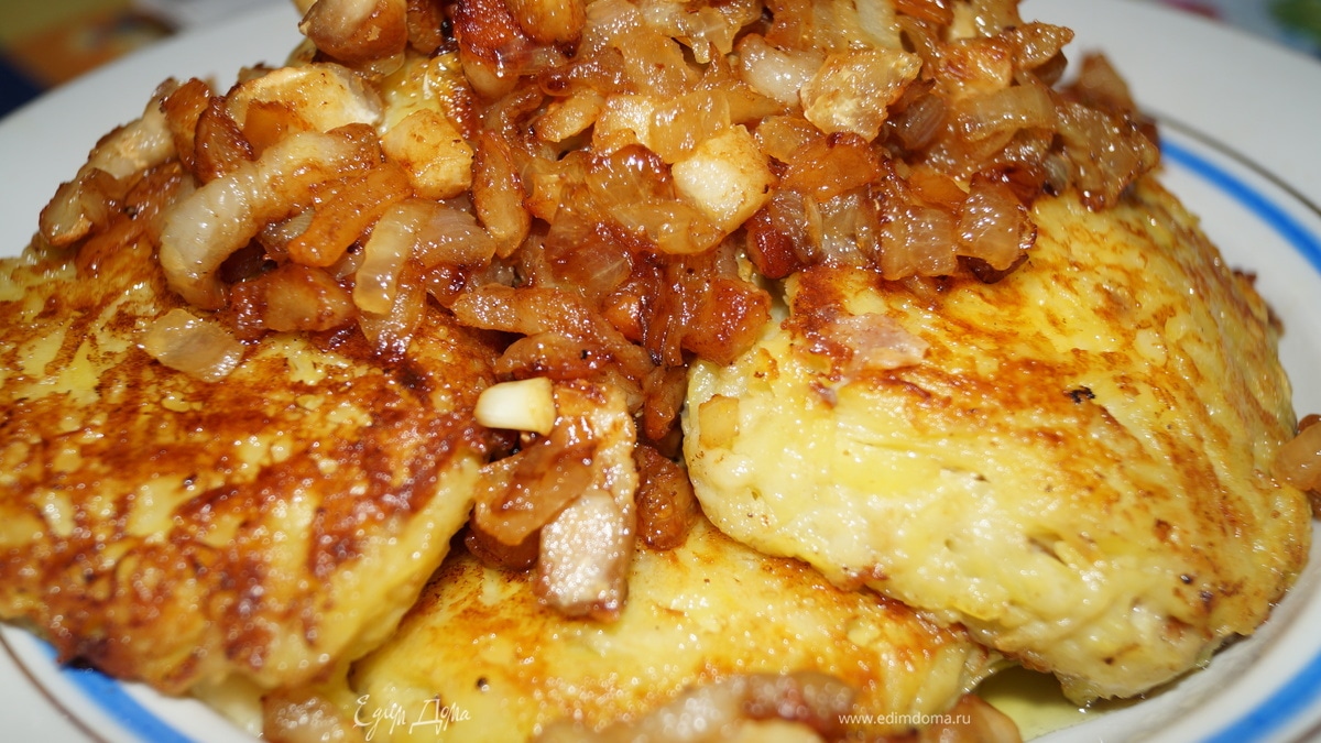 Вот такая вкуснотища получилась, а еще гарнир в придачу со смачными шкварками.
