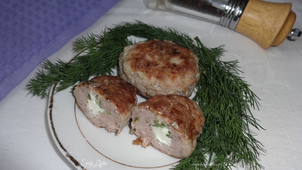 Очень вкусные котлетки с начинкой из плавленого сыра и кинзы. Фарш можно использовать как из одного вида мяса, так и смешанный. Котлеты можно приготовить для семьи на обед или подать на праздничный стол. На гарнир подойдут свежие овощи, салат из свежих овощей, овощное или картофельное пюре.