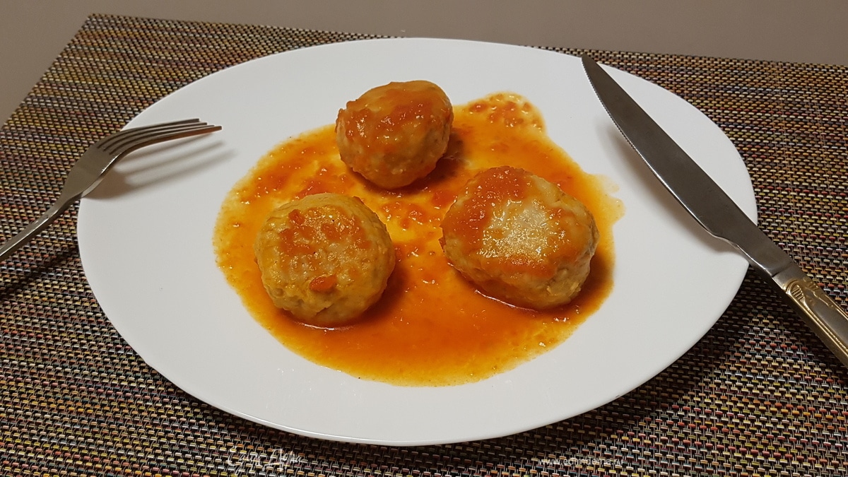 Вылить перетертые помидоры в сковороду, добавить томатную пасту. Разбавить водой. Положить в соус тефтельки. Довести до кипения. Уменьшить огонь и тушить на маленьком огне 20 минут.