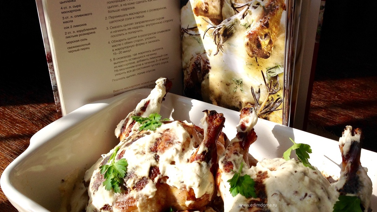 Получилось вкусно, ранее я также готовил этих цыплят и добавлял в соус с маскарпоне свежие помидоры, чеснок и тархун — тоже получается очень вкусно!