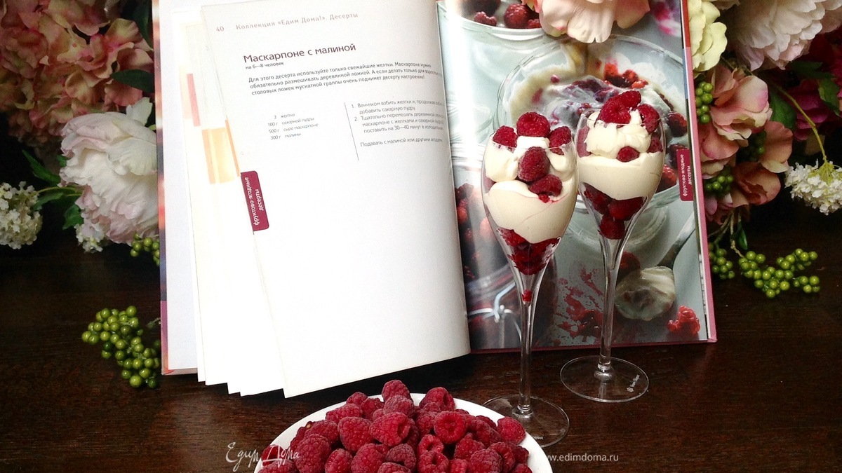 Рецепт «Маскарпоне с малиной» вы найдете на странице под номером 40.