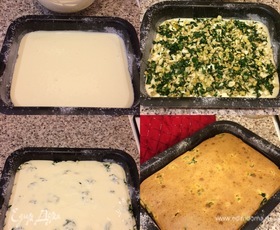 Выливаем в форму половину теста, затем укладываем начинку и заливаем второй половиной теста. Выпекаем пирог 60 минут (ориентируйтесь по своей духовке).