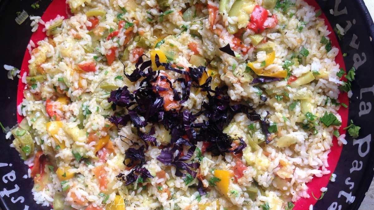 Овощная паэлья с соком лайма