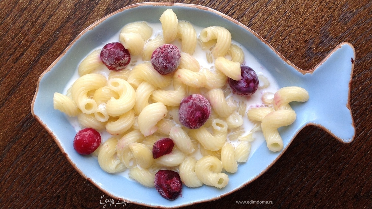 Налить в тарелку молочный суп, добавить вишню. - Шаг 3