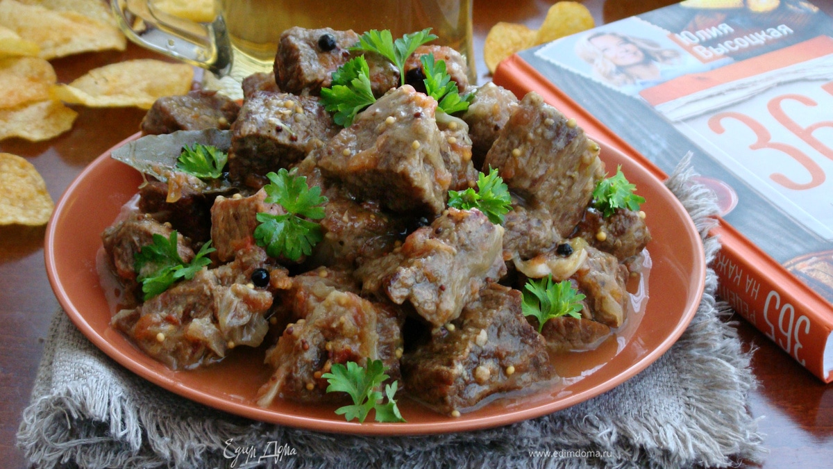 Отличное мясное блюдо для семейного обеда или ужина! Оно прекрасно сочетается с любым гарниром. Приготовлено по книге Юлии Высоцкой «365 рецептов на каждый день». Мясо получается сочным и ароматным, с легким пивным акцентом.