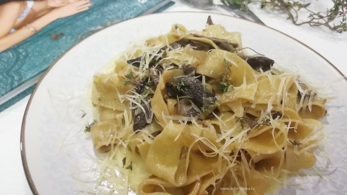 Очередной рецепт из книги Юлии Высоцкой «В поисках тирамису». Рецепт необычный, я бы сказала, на любителя. Сочетание картофельно-лукового соуса и пасты с грибами, возможно, не всем понравится. Нам блюдо понравилось, будем готовить еще. Рассчитан рецепт на большую голодную компанию, получается много и сытно.