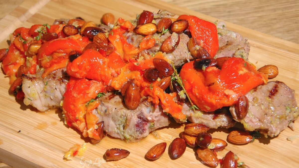 Баранина в чесночном маринаде с миндалем и сладким перцем