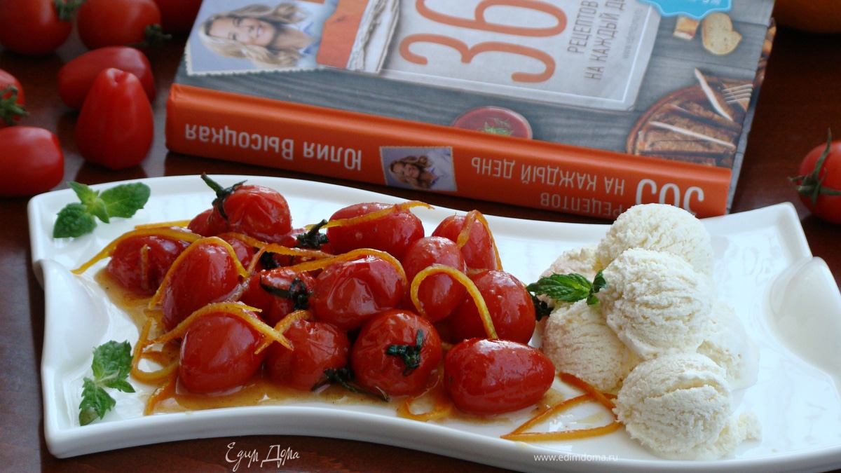 Карамелизированные помидоры со сметанным мороженым