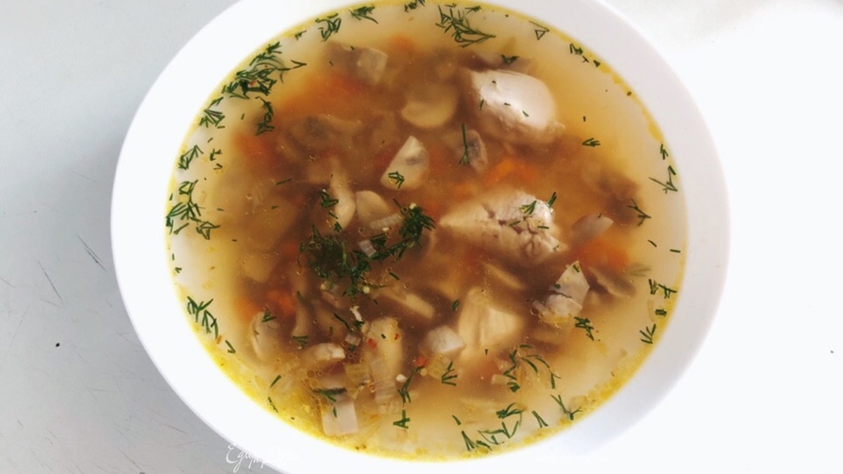 Куриный суп с грибами и вермишелью