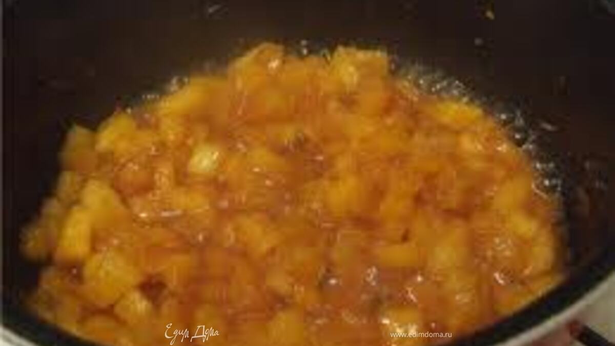- Шаг 3Мелко нарезаем перчик чили, соединяем с яблоками и масалой, солим по вкусу, ставим на огонь, часто помешивая. При необходимости можно долить немного воды.