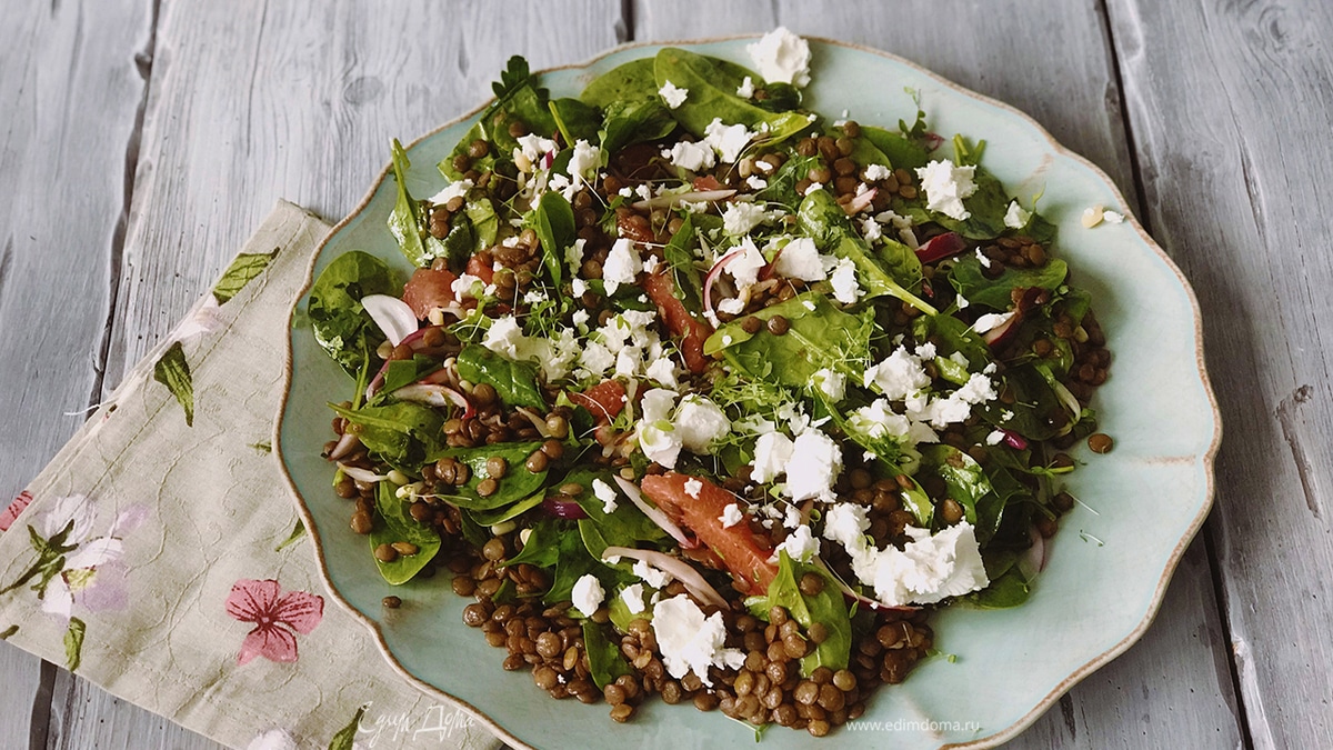 Салат с грейпфрутом, чечевицей и сыром фета