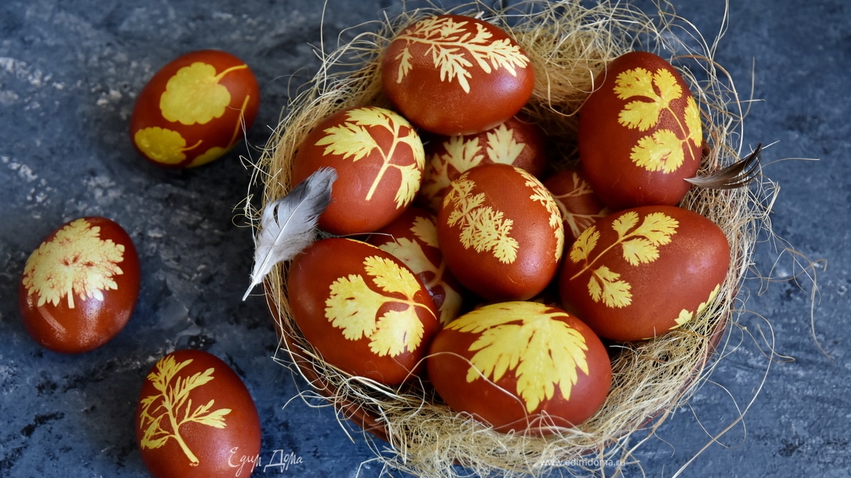 Пасхальные яйца, украшенные листочками