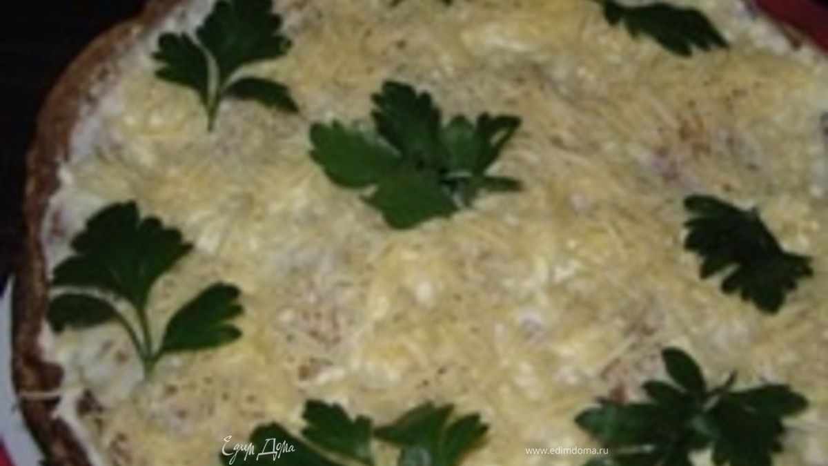 - Шаг 1Яйца взбить с молоком, солью перцем и мукой. Добавить печень, молотый на мясорубке. Все вымешать. (Тесто должно разливаться на сковородке. Из полученной массы пожарить блинчики, выложить горкой, смазывая каждый смесью майонеза с чесноком. Сверху присыпать тертым яйцом и зеленью.