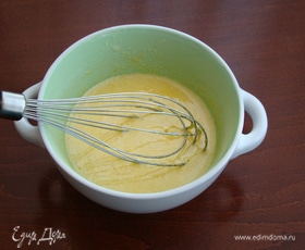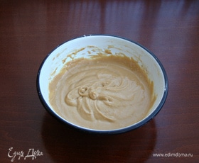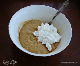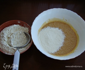 К смеси частями всыпать муку, каждый раз перемешивая до однородности.