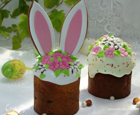 Увидев вот такую забавную идею оформления куличиков, не осталась равнодушной. Приятно удивить и порадовать близких такими забавными пасхальными кроликами.
