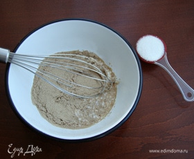 К смеси добавить 2 ст. л. муки и, перемешав до однородности, опять поставить в теплое место.