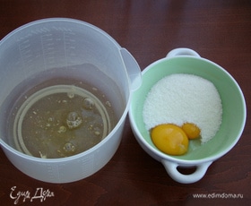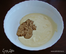 Развести дрожжи в теплом молоке, добавить 1 ч. л. сахара из общего количества и поставить в теплое место.