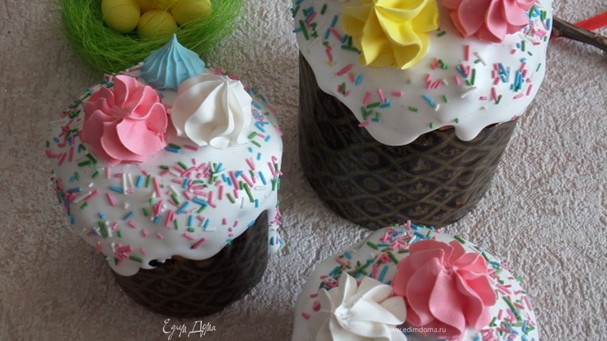 Полностью остуженные куличи покрываем глазурью и украшаем кондитерскими посыпками и безе. - Шаг 19