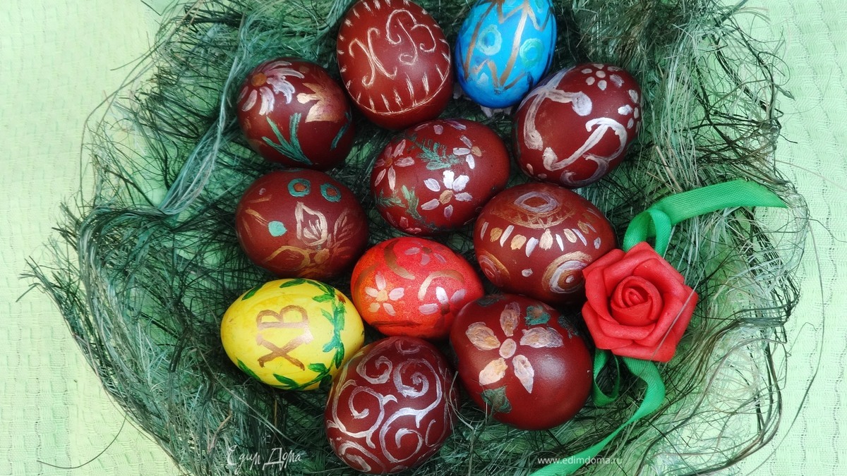 Яйца, расписанные вручную, очень красиво смотрятся на праздничном пасхальном столе. Расписывание пасхальных яиц — работа очень кропотливая, требующая, прежде всего, художественных навыков, терпения и времени. Лучше всего, мне кажется, расписывать декоративные деревянные яйца, чтобы сохранить красоту на долгие годы. А обычные яйца очень жалко потом разбивать. Окрашенные и расписанные яйца делятся на несколько групп: крашенки, писанки и малеванки. Крашенки — это яйца, окрашенные в один цвет. Писанками называли яйца, которые окрашивали сырыми, не вареными. Для их окрашивания использовали воск, краски и специальные инструменты. Яйца-писанки расписывали только геометрическими узорами. И, наконец, малеванки (от украинского «малевать»
