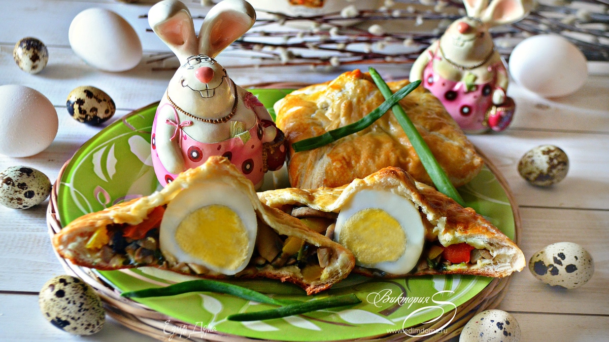 Яйца c овощами и грибами, запеченные в тесте