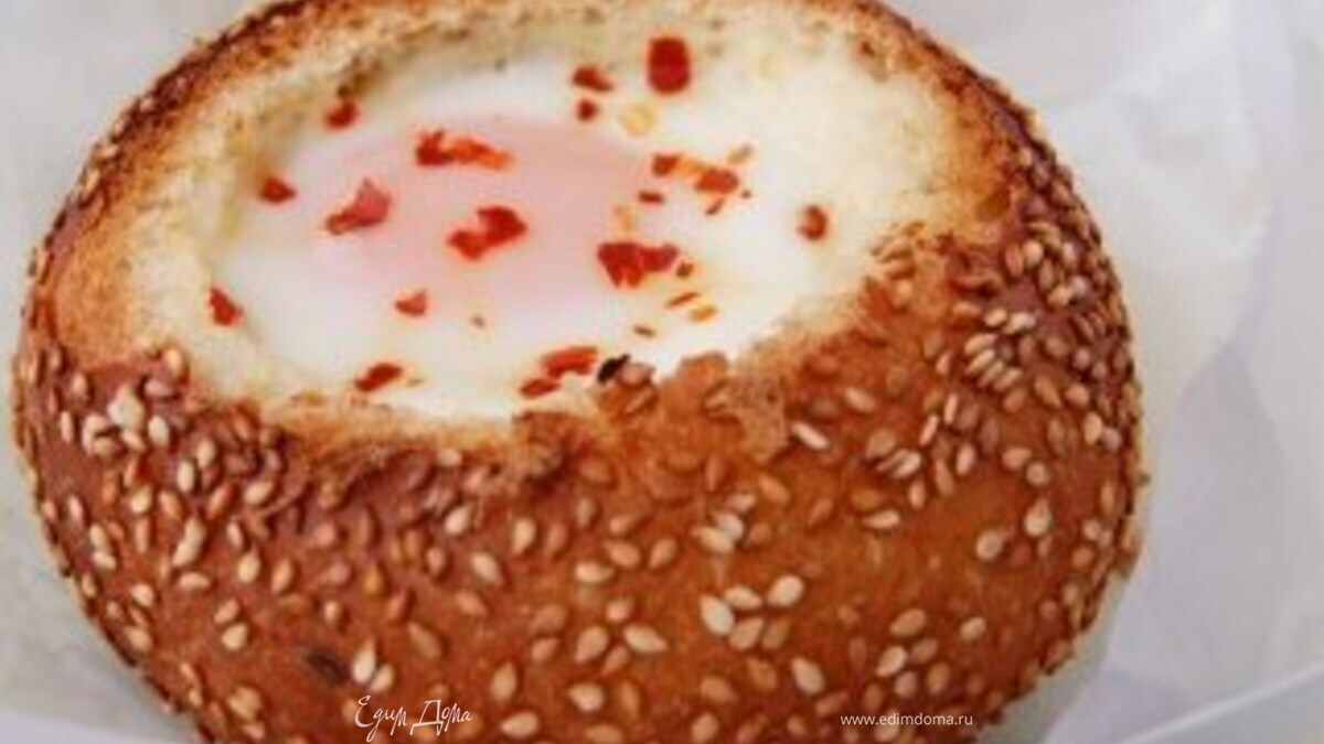 - Шаг 1Острым ножом отрезать верхушку булочки. Аккуратно вырезать полость внутри булочки ( обязательно оставить внутренние края потолще, потому что яйцо хорошо впитывается в булочку и все может развалиться, если удалить слишком много сердцевины). В образовавшуюся полость в булочке аккуратно вбиваем яйцо. Заворачиваем фольгой и ставим в разогретую до 180-200 гр духовку. Через 15 мин ( или как начнет сворачиваться белок )снять фольгу и держать еще в духовке, пока не образуется плотная белая корочка. Подаем на стол предварительно посолив,посыпав перцем чили и тертым пармезаном.