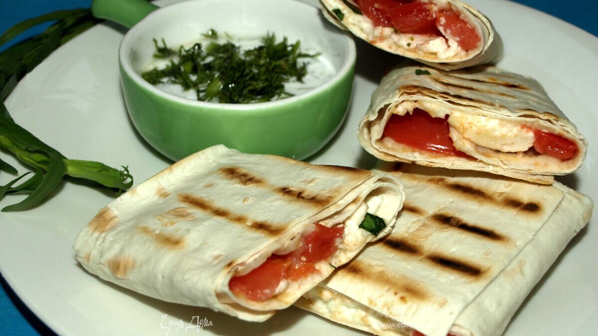 Лаваш с адыгейским сыром, тархуном и помидорами