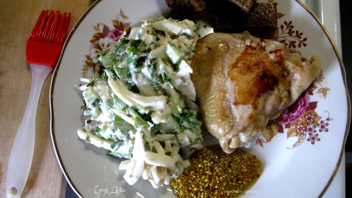 "смешиваем деревянной ложкой"? На фото силиконовая кисточка! "Подаем с индейкой"?? На фото куринное бедро!