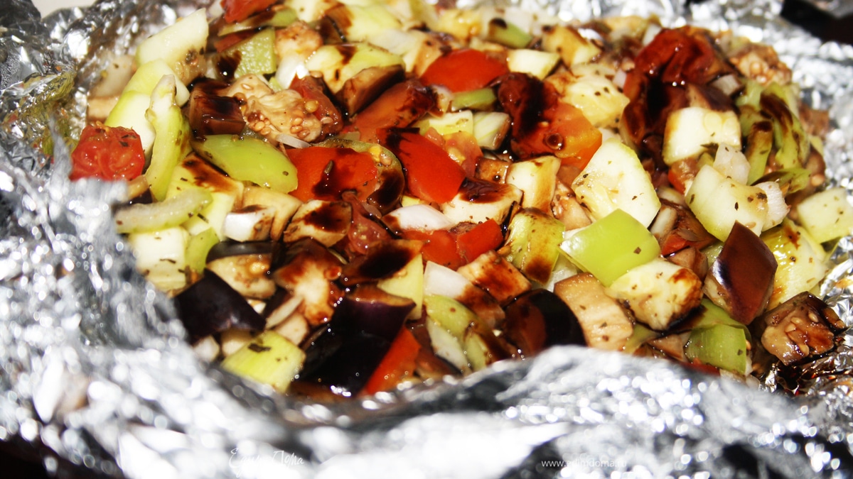 Перед подачей полить бальзамиком. Рататуй на мангале готов, приятного аппетита!