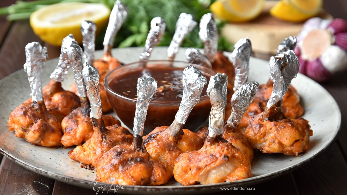 Оставить крылья на 30 минут для маринования. По желанию косточки можно обернуть фольгой для более эстетичного вида. Запекать в духовке или на решетке до золотистого цвета. В духовке при температуре 200°C достаточно 40 минут. За 5 минут до готовности подключить режим «гриль».