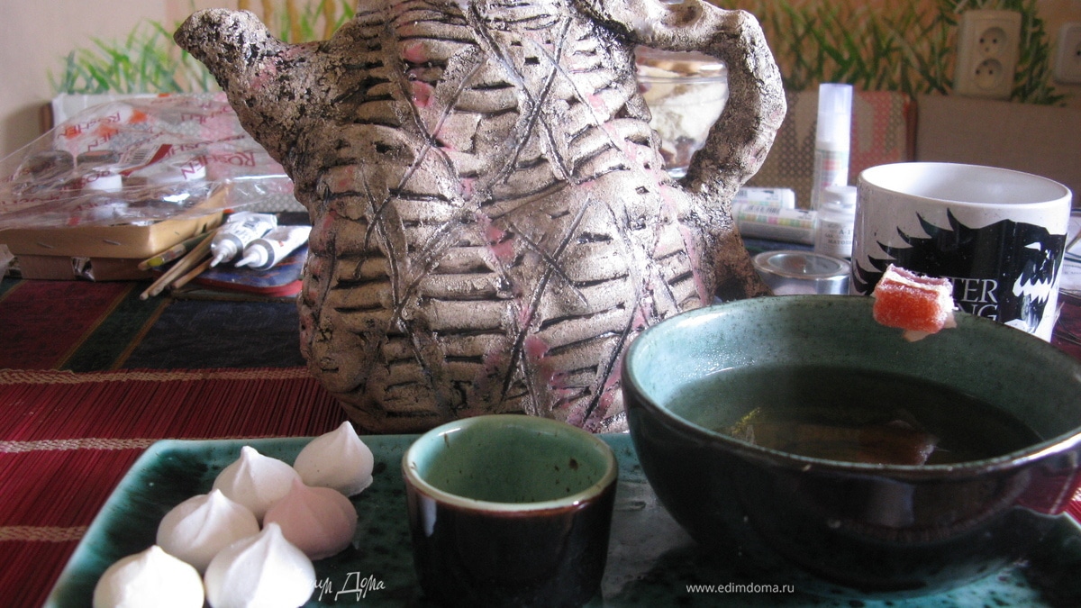 — это уже другие сорта чая, поэтому за ними придется идти в магазин. Саусеп зеленый крупнолистовой, черный Earl Grey, натуральный зеленый чай крупнолистовой и ферментированный зеленый иван-чай. После того как мы заварили чай, в нем вырабатываются эфирные масла. Он ободряет, как кофе, если немного настоится. Но ни в коем случае не оставляйте заварку надолго — по китайской мудрости она превращается из бальзама в яд. Лучше меньше заварить, но делать это чаще. Приятного чаепития.