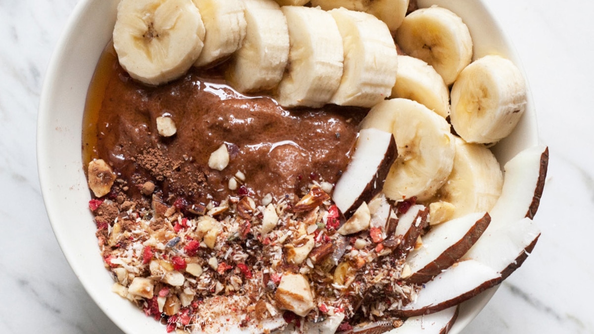 Манная каша всем знакома с детства, но мало у кого с ней связаны приятные воспоминания. Я немного изменила классический рецепт, добавив в него какао. Вместе с фруктами и сладкой ореховой дуккой получился настоящий десерт без рафинированного сахара, который отлично подойдет для завтрака.