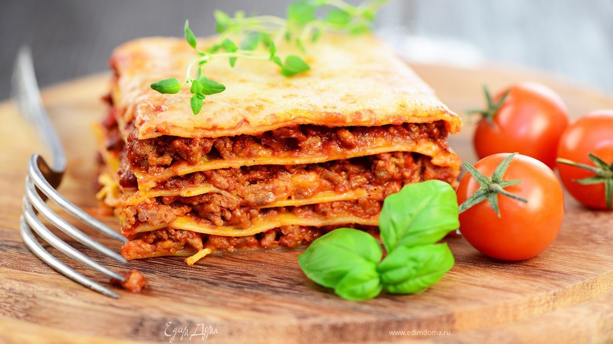 Лазанья с мясным фаршем и грибами